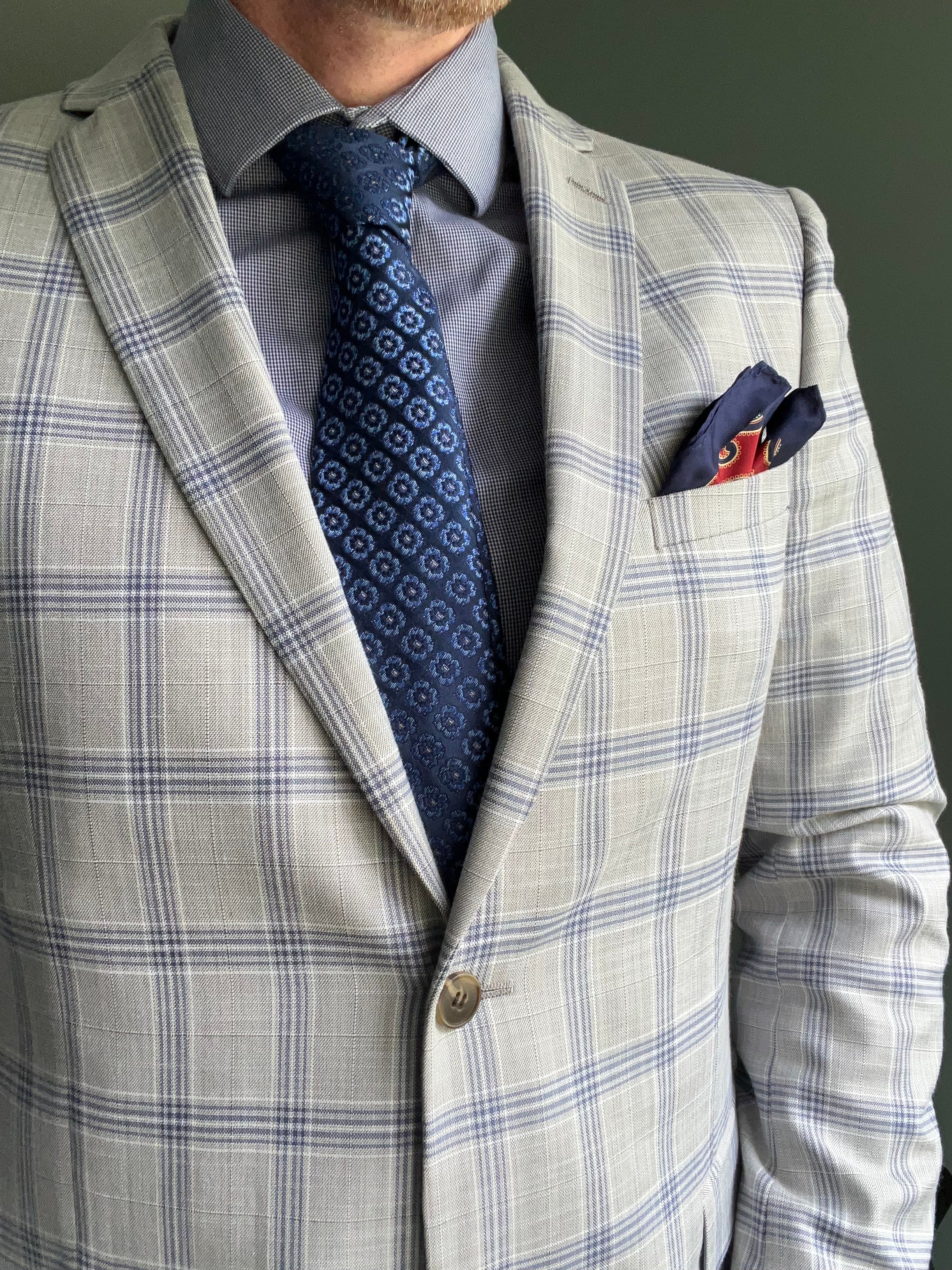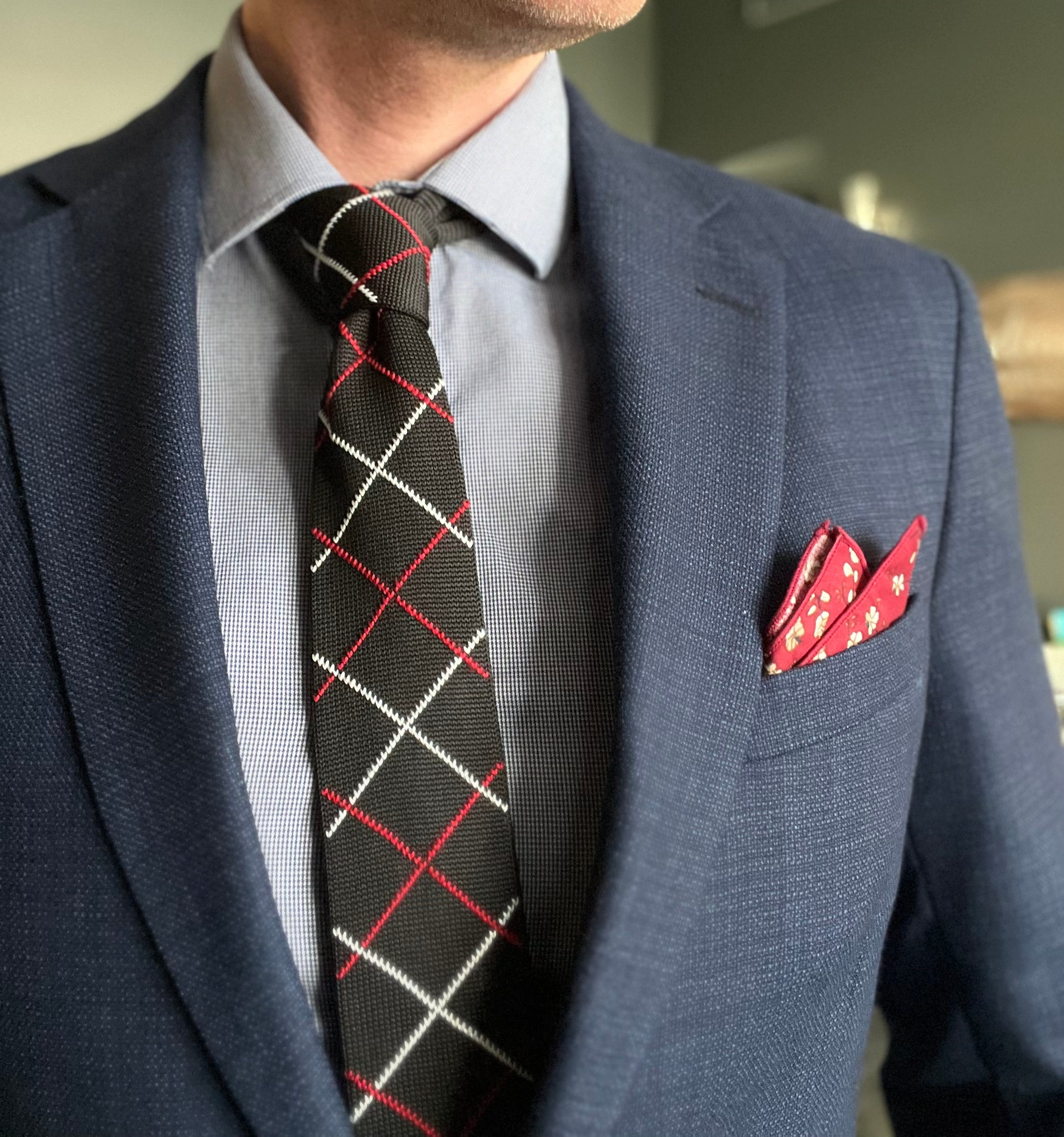 Red and Blue Paisley Silk Pocket Square in Navy