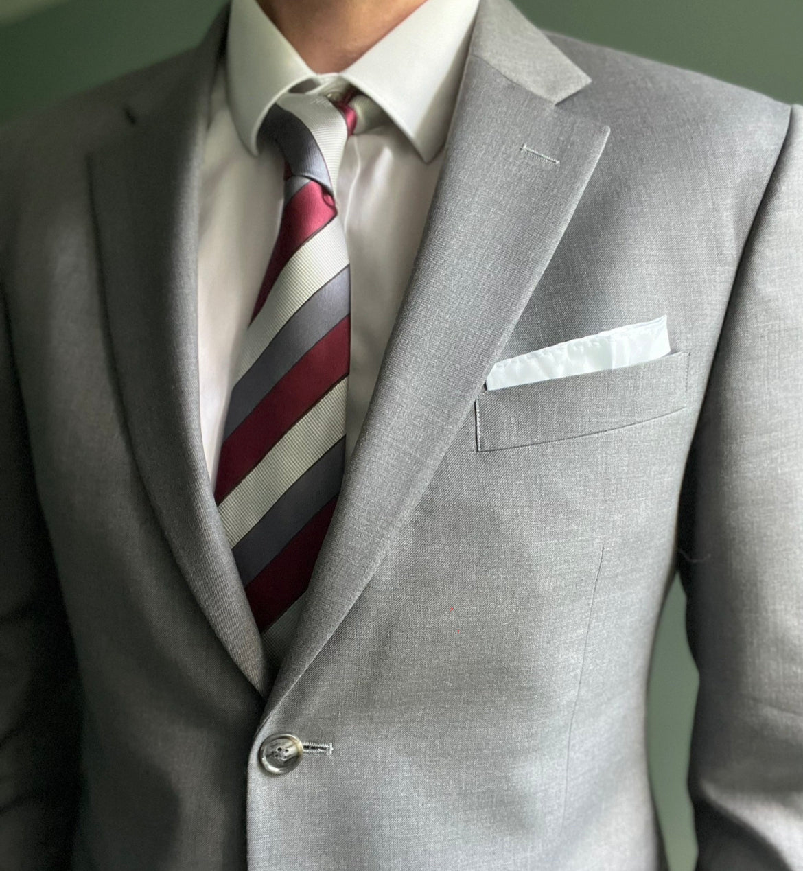 Red and Grey Striped Silk Tie